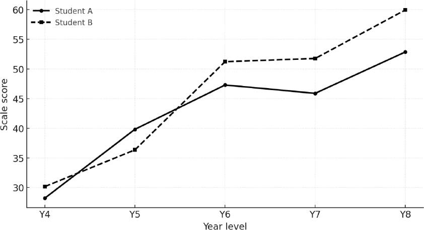 Figure 1. Score trajectories on a standardised test for two students